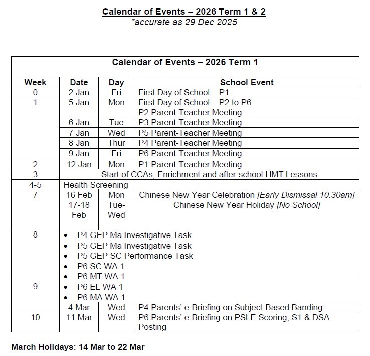 Primary 1 to 6